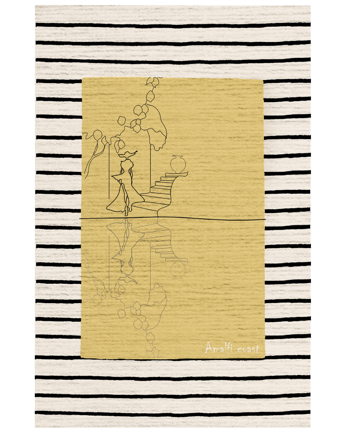 “Amalfi coast” è un tappeto che racchiude la poesia di un luogo dove il tempo rallenta e tutto diventa bellezza. Un omaggio alla dolcezza mediterranea, da abitare ogni giorno.